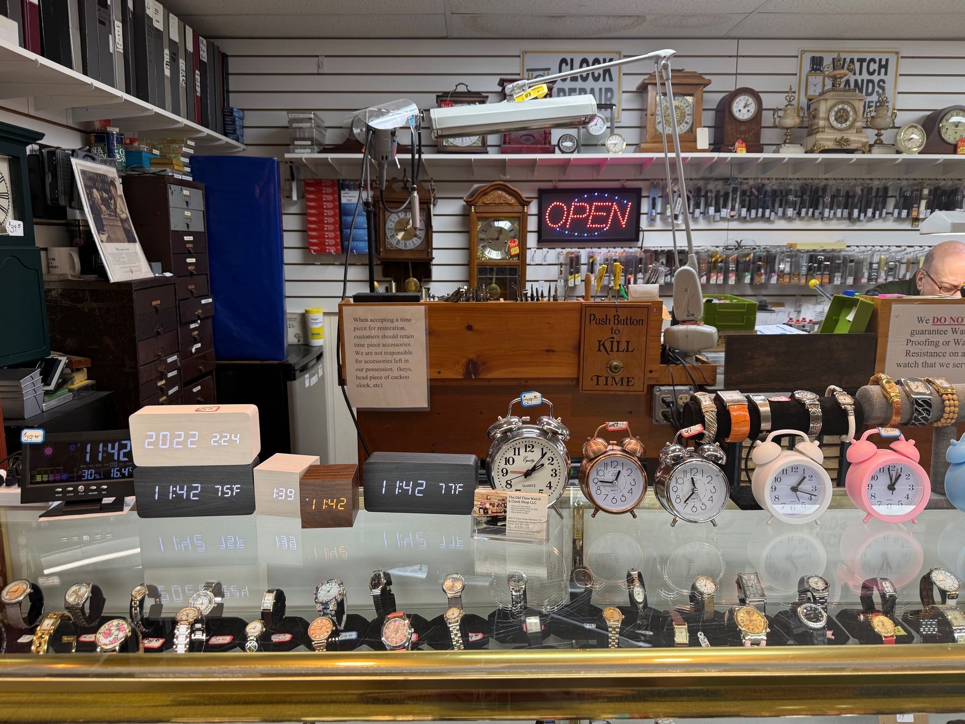 WATCH REPAIR- Batteries, replacement bands, band sizing & adjustment, quartz movement replacement, crystal replacement, also, Pocket watch & Antique wristwatch Service.